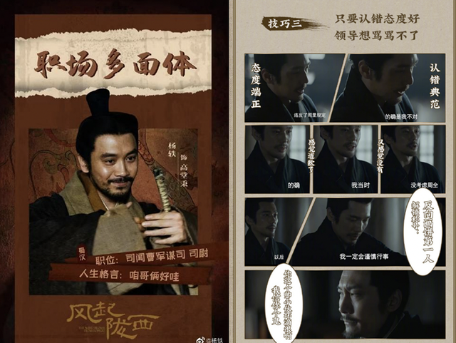 类型元素的拼贴与融入一定程度上也有利于话题营销。《长安十二时辰》打出的标签是古代城市反恐,《风起洛阳》曾经打出过武周版“神盾局特工”的旗号,《风起陇西》的定位是古代谍战+职场,在微博上也可以看到剧方配合这一定位的宣传物料。