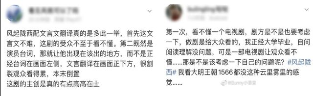 但观众的不满之处也正在此处,有网友就在豆瓣短评区表示,“接受古人讲大白话但不接受古人讲现代话”。当剧集一方面以考究低调的摄影影调和穿插的文言文拗足了正剧范儿,一面又在台词中加入“晨会”“干货”“风险评估”等互联网黑话的时候,下班回家打开剧集正打算放松一下的打工人们很难不在虎躯一震的同时感到出戏和割裂。