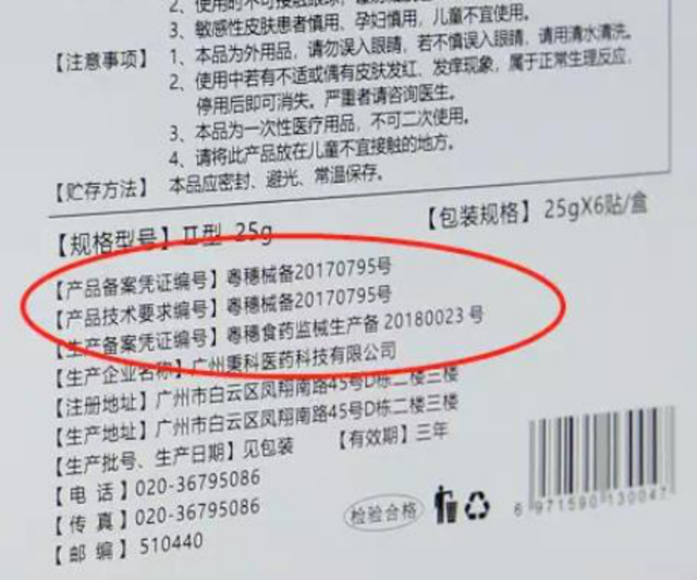 比如说曾为贴片类产品市占率第一的敷尔佳,其旗下代表性产品为“敷尔佳医用透明质酸钠修复贴”,属于“械字号”二类管理标准。另外还有一款产品,为“敷尔佳透明质酸钠修复膜”,二者名称相差无几,包装样式更是几乎一样,但后者却是妆字号标识。