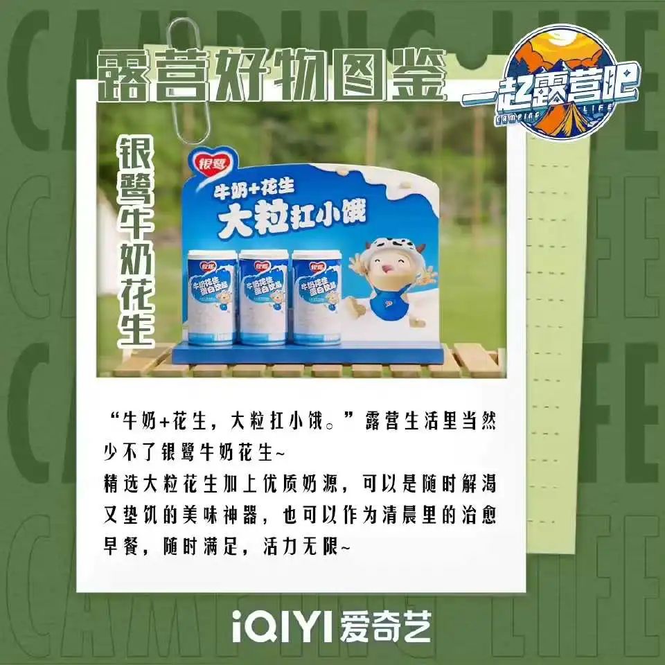 作为老牌国货银鹭,更是希望借此推动品牌年轻化。“把握当下年轻群体的兴趣趋势,亲近年轻用户是我们选择露营节目的初心。”厦门银鹭食品集团有限公司市场中心总监刘芳芳说,“露营背后25岁到45岁追求潮流生活的青年人群,是我们银鹭牛奶花生这个产品的主力消费军。我们希望在提升品牌的曝光量及认知度的同时强化产品的消费场景,拉近品牌与他们间的距离”