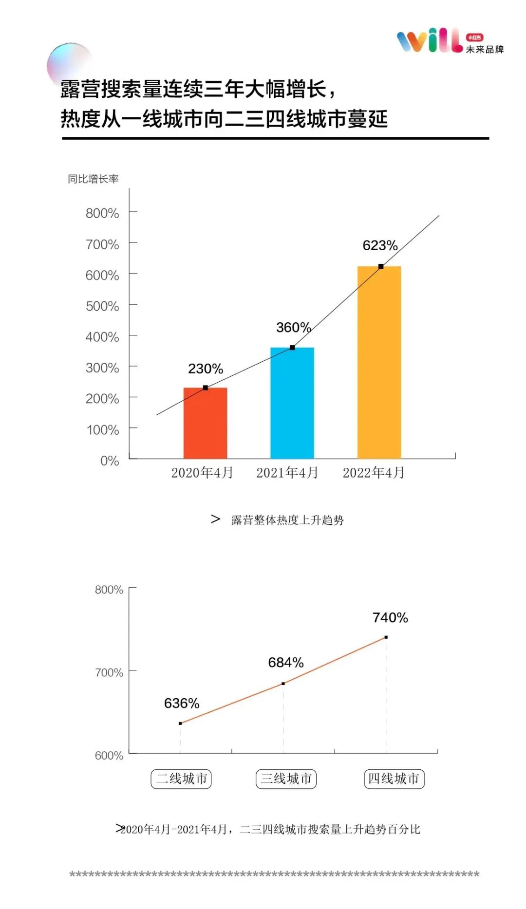 据小红书统计数据显示,继2020年五一假期搜索量同比增长290%,2021年五一假期同比增长230%后,今年五一期间小红书上露营相关搜索量同比增长746%,呈现出高速增长的态势。