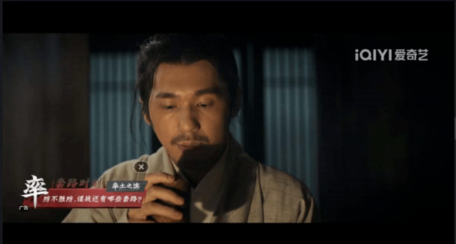 《风起陇西》中有这样一个段落,杨仪针对时局判断失误。于是在那一集的剧中小剧场里,《率土之滨》直接在字幕中打出了“这杨仪可真菜”的吐槽话语。随后,杨仪立即指着《率土之滨》的底部广告说:“你行你上啊。”这种广告插入的模式,也让观众非常有代入感。
