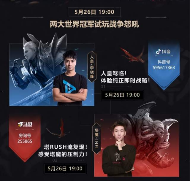 《战争怒吼》也是5月上线的新游戏。作为一款RTS游戏,《战争怒吼》希望吸引的自然是传统的RTS游戏粉丝。所以这一次,网易游戏找来了《魔兽争霸》选手“人皇”SKY李晓峰和“塔魔”INFI。各种连麦竞技直播,获得了《战争怒吼》需要的主流受众。