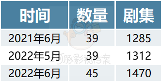 根据广电总局最新发布的全国拍摄制作电视剧备案公示,2022年6月电视剧备案共45部、1470集。与5月的备案数量相比,6月电视剧备案总数有所回升。与去年6月相比,电视剧备案总数呈现上升趋势。