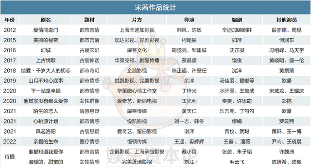 《他其实没有那么爱你》是由白玉兰最佳编剧秦雯操刀的女性群像剧,进一步探讨都市女性的现实情感问题;《陌生的恋人》中宋茜一人分饰两角,一面是充满欲望与执念的罗芊怡,拥有成熟女性的魅力和霸道,另一面是失忆的宋小冬,迷茫且单纯,这也是宋茜首次尝试极具戏剧性和类型化的悬疑爱情题材。