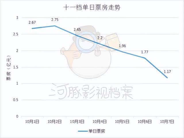 截至10月7日,十一档总票房收归14.96亿元,与去年十一档的43.88亿元相比,下滑明显。