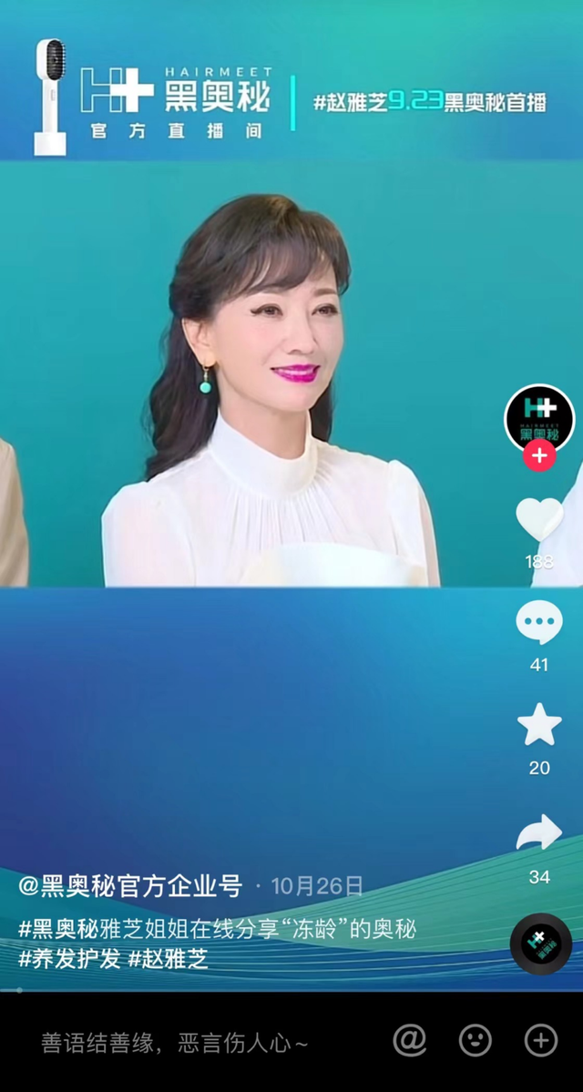 9月23日,在北京字节跳动总部,功效型养发养发品牌——黑奥秘,携手明星赵雅芝、抖音官方、以及抖音本地生活头部服务商蜂鸟小课,打造了一场成交813万的直播。