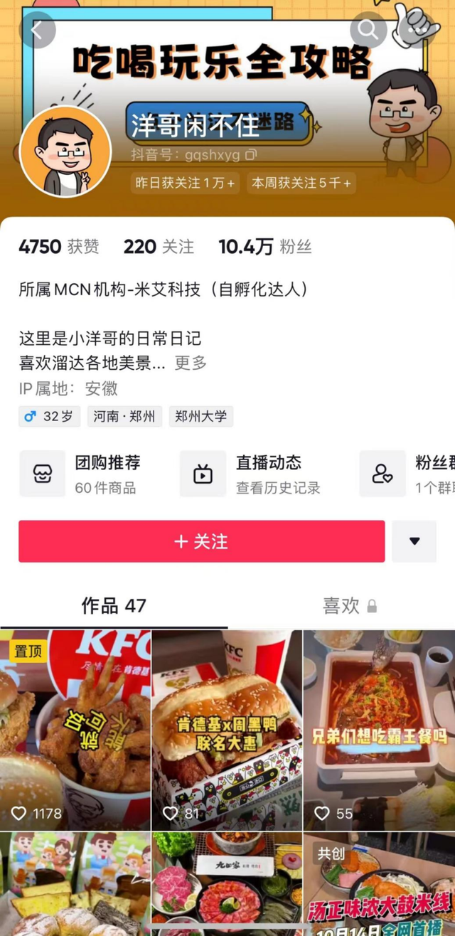 一场“肯德基专场”的抖音生活服务直播,让粉丝量不到10万的“洋哥闲不住”直接涨粉3.4万,并收获了高达605万的GMV。