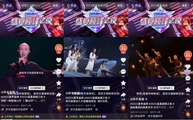 2023年的夏季盛典,盛夏巅峰之夜线下晚会,又将这一IP的内核做了新的延展。平台线下晚会往往是其内容价值取向、生态发展方向的集中展示。这一次,快手结合自己的站内内容生态,都做了哪些创新?