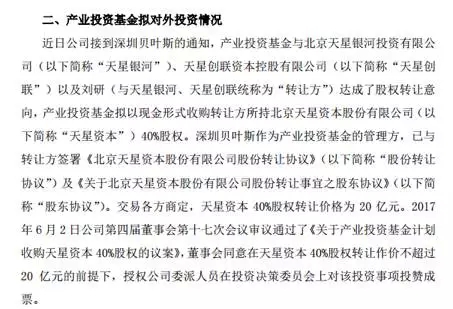 首发|中科新材产业基金20亿收购天星资本40%股权,或将扩大文娱投资比例?
