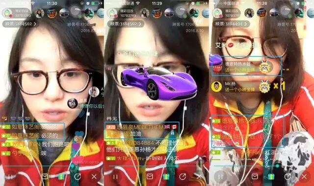例如在傅园慧的直播当中,经常出现诸如“海”、“游艇”、“跑车”形象的礼物礼物,每个的价格也有所区别,大致对应人民币 1672、657、150 元。一旦有人送出礼物,屏幕上就会出现一连串的全屏动画效果,整个直播页面瞬间就被挡住了。